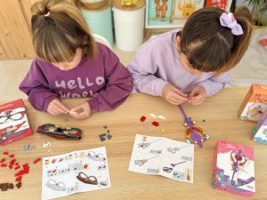 Por otro lado, las propuestas más creativas también tienen un papel importante. Juegos como los collares de cuentas permiten diseñar y crear accesorios propios, fomentando la motricidad fina y la expresión personal. A esto se suman opciones como Fun Blocks, que invitan a construir y crear elementos como coronas o diademas, potenciando la imaginación y el juego simbólico.